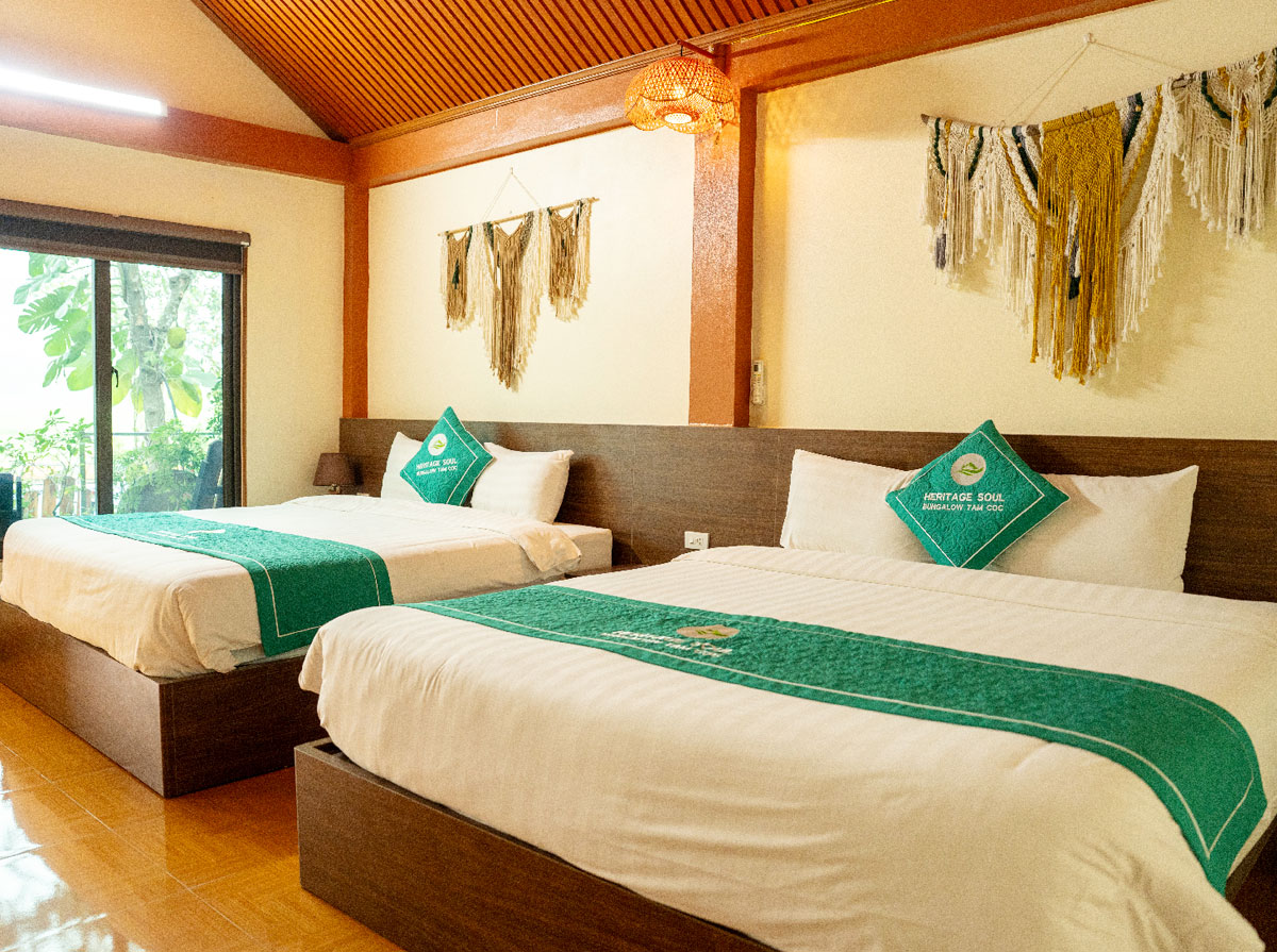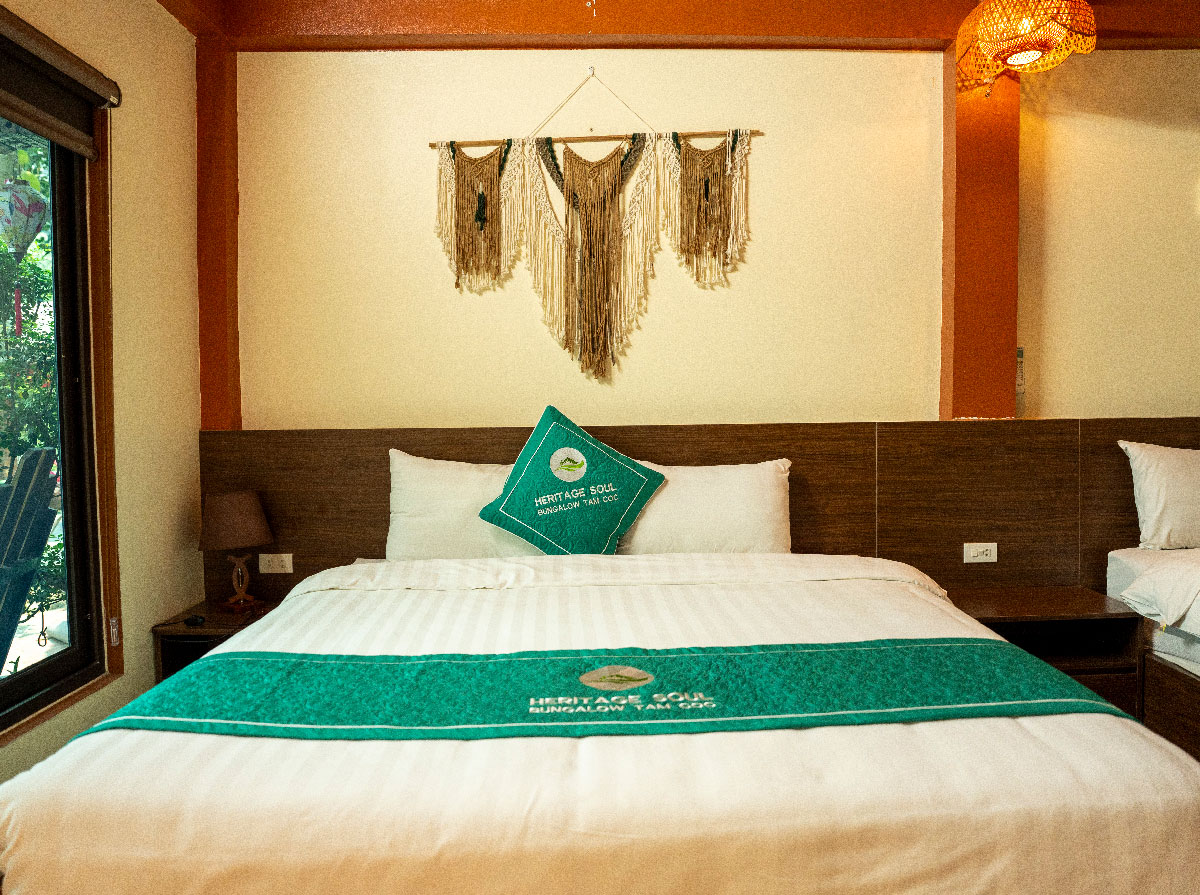 Heritage Soul Bungalow Tam Cốc là điểm dừng chân lý tưởng dành cho du khách tìm kiếm sự yên bình giữa thiên nhiên thơ mộng của Tam Cốc. Nơi đây gây ấn tượng với mô hình bungalow mộc mạc, hòa quyện tinh tế giữa kiến trúc truyền thống và tiện nghi hiện đại, mang đến không gian nghỉ dưỡng ấm cúng và gần gũi.