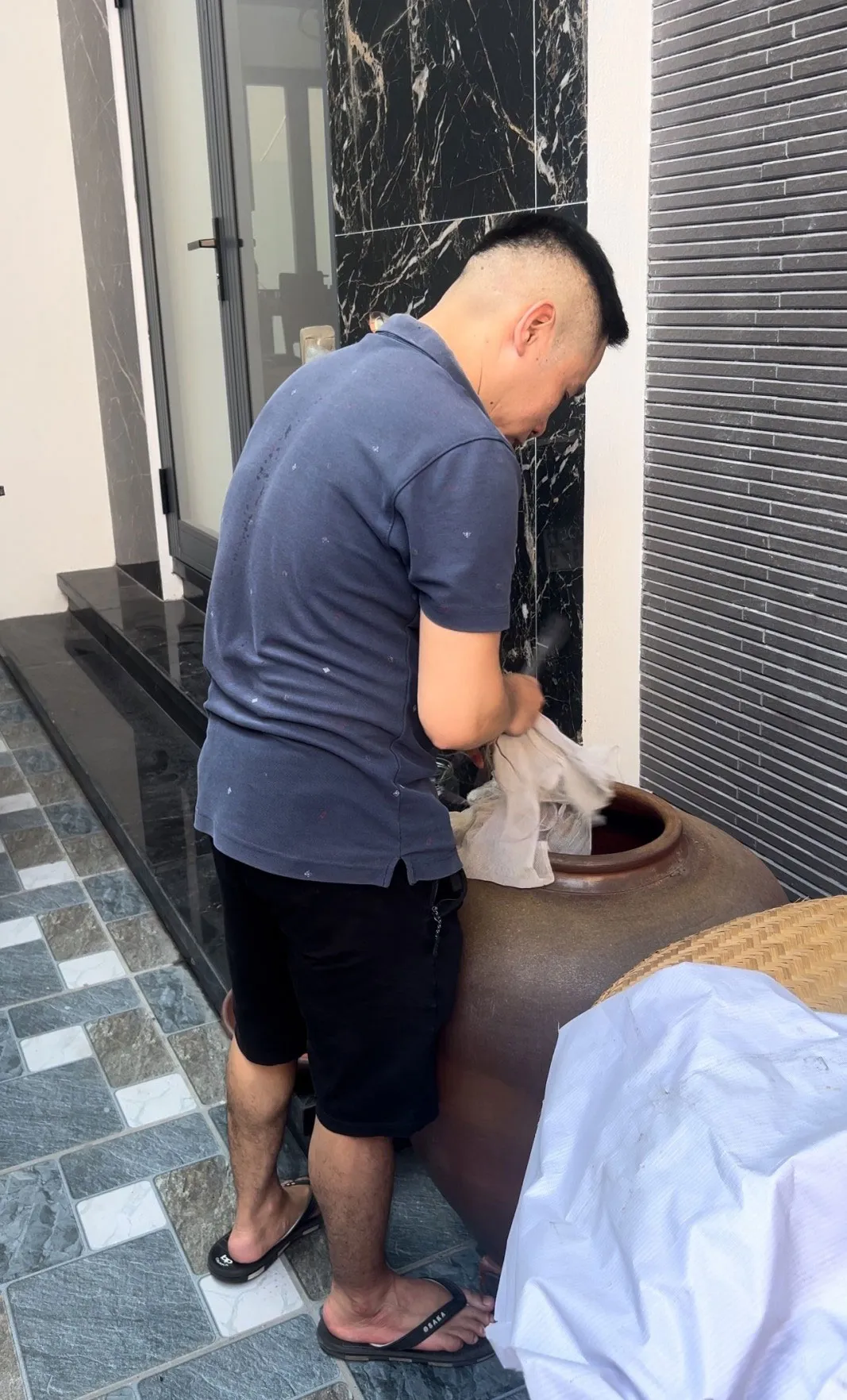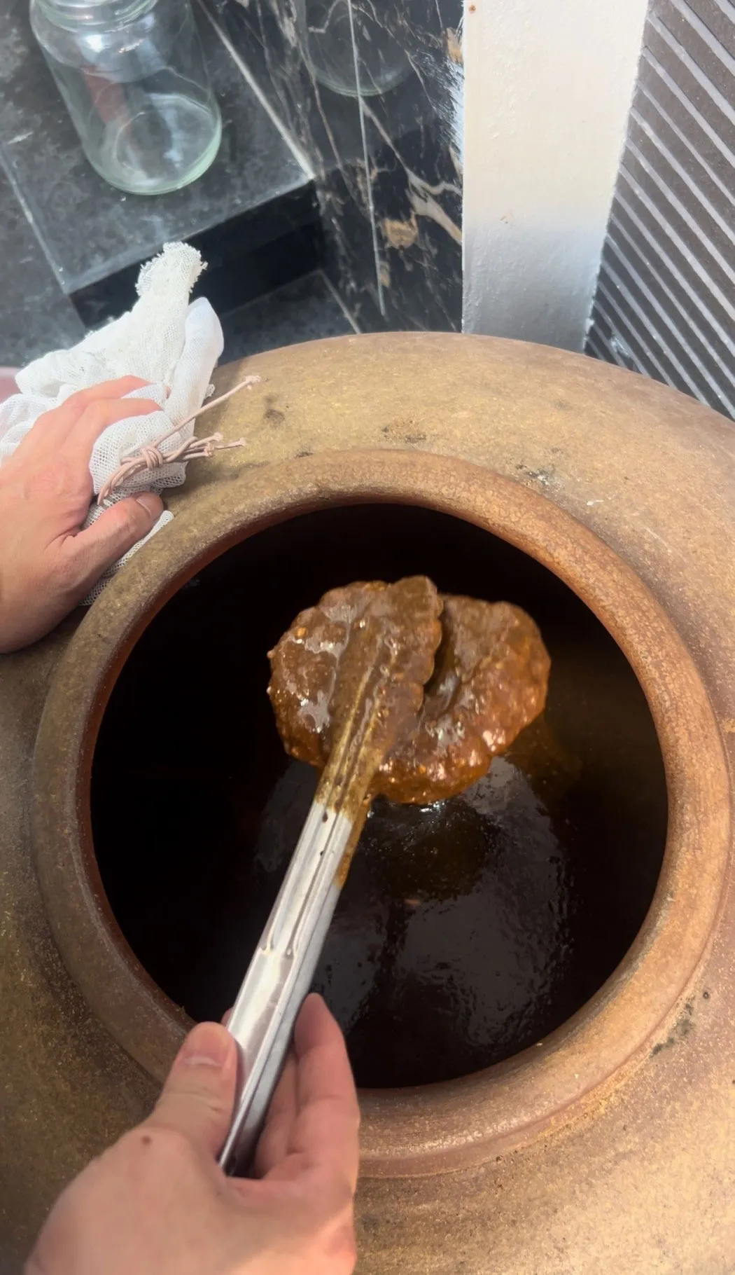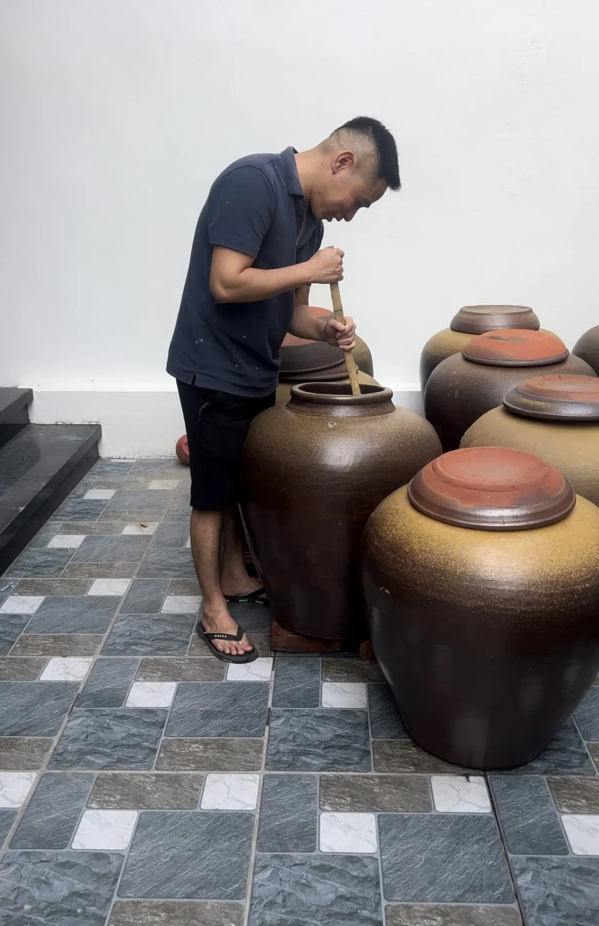 “Tương làm cà cũng phải là loại tương ngon, có màu vàng, vị đậm ngọt và thơm. Thế nhưng, để có được vại tương ngon, người làm phải cẩn thận, tỉ mỉ trong từng công đoạn, chỉ cần lơ là một chút có thể hỏng cả mẻ tương. Ngoài ra, gạo cũng phải được ngâm trong nước khoảng 7 tiếng, sau đó trộn với bột ngô và đem lên đồ khoảng hơn một tiếng. Hỗn hợp này sau đó được ủ mốc ở nhiệt độ phòng, khoảng 6 ngày sẽ cho mùi thơm đặc trưng. Cùng với đó, đỗ được chọn làm tương cũng phải là loại hạt mẩy, tròn đều, sau đó rang vàng và xay nhỏ…”, anh Trường chia sẻ.