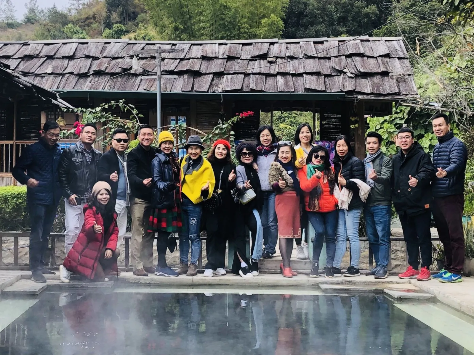 Đoàn khảo sát chụp hình tại Suối khoáng nóng xã Ngọc Chiến, huyện Mường La, tỉnh Sơn La
