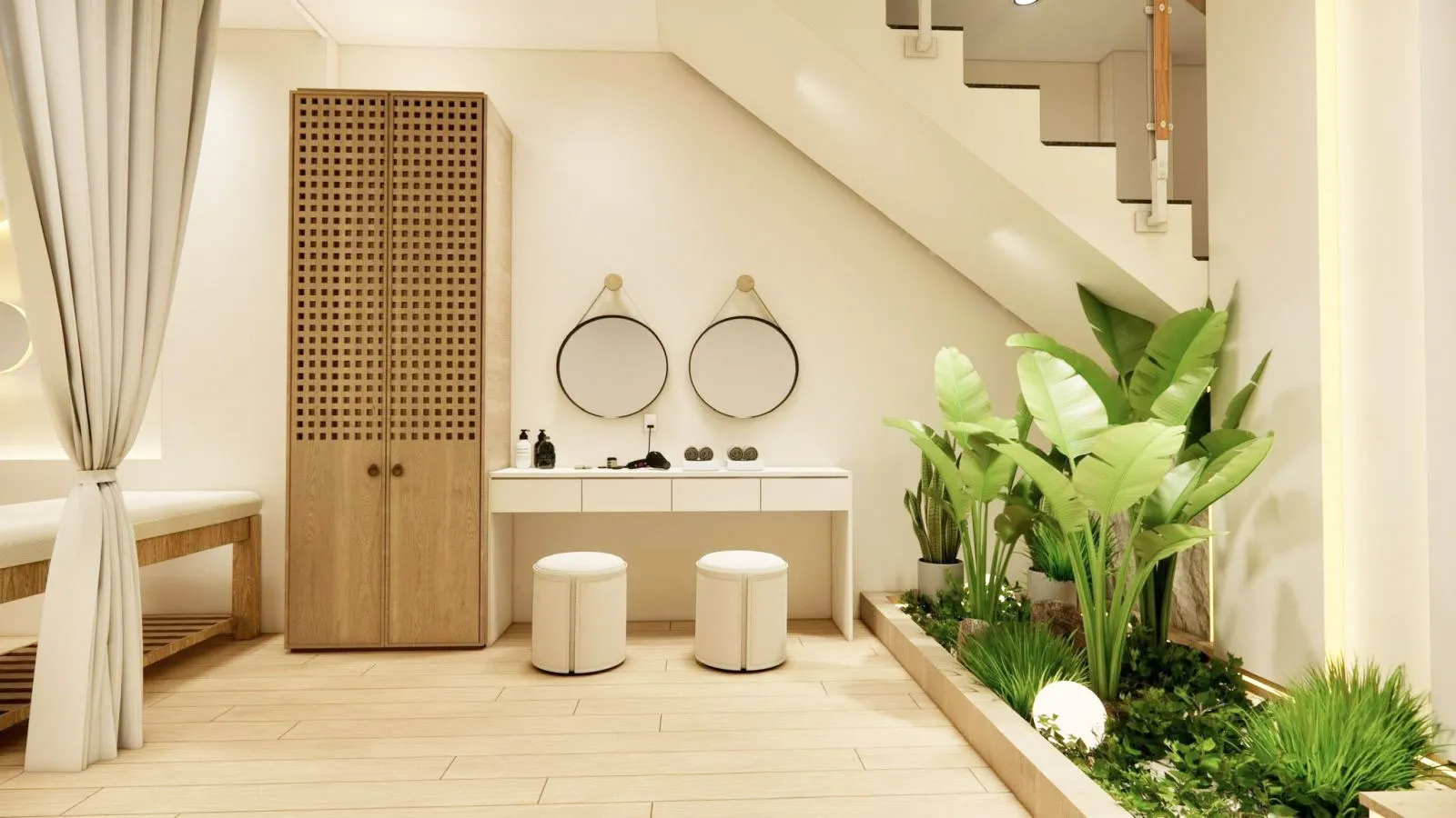 Spa được xây dựng với phong cách tinh tế, ấm cúng, sử dụng ánh sáng dịu nhẹ cùng hương thơm từ tinh dầu thiên nhiên, mang đến cảm giác thư thái ngay từ những phút đầu trải nghiệm. Không gian yên tĩnh, gần gũi thiên nhiên giúp cơ thể và tinh thần được thả lỏng hoàn toàn.
