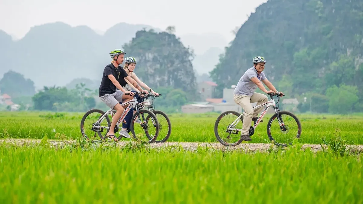 Đạp xe len lỏi qua những con đường làng yên tĩnh, những cánh đồng lúa xanh mướt hay men theo chân núi đá vôi hùng vĩ, du khách sẽ được tận hưởng một Tràng An rất khác – gần gũi, mộc mạc và đầy thi vị.